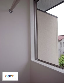 サンルームの窓を開けても、隣との間に「壁」が設けられ、プライバシーを守ります